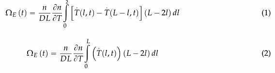 where (n/DL) (Sn/ST) is the amplitude of the Shupe effect; D and L are the coil diameter and fiber length, respectively; n is the refractive index of fiber; Sn/ST is the temperature coefficient (the quartz's temperature coefficient is approximately 10_5/oC); T(l,t) is the temperature distribution along the fiber at time point t; T (l, t) and T (L — l, t) are the time partial derivatives of this distribution.
