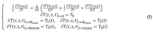 In order to calculate the thermal fields in the coil component cross section, the heat-conduction equation in cylindrical coordinates is given in Equation (5):